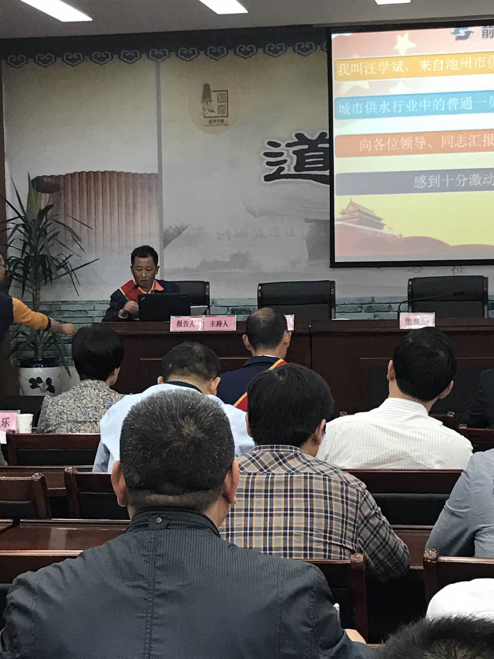 2017年4月27日下午三點,池州市住建委舉辦了市級勞模先進事跡報告會,我公司市級勞動模范汪學斌應邀作了先進事跡報告公司民生水廠朱永強同志談了感想。公司黨支部書記、工會主席、團支部書記等聆聽了報告會。