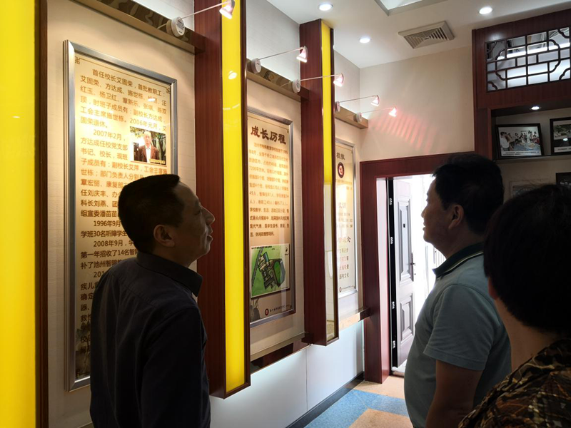 在市特殊教育學校,寧加寶一行先后來到辦公大樓、教室、家長培訓中心等區域,認真聽取和詢問設施建設、生活照料、隊伍建設等情況。方校長為我們介紹了學校的發展歷程,展示了學校近年來的教學成果。