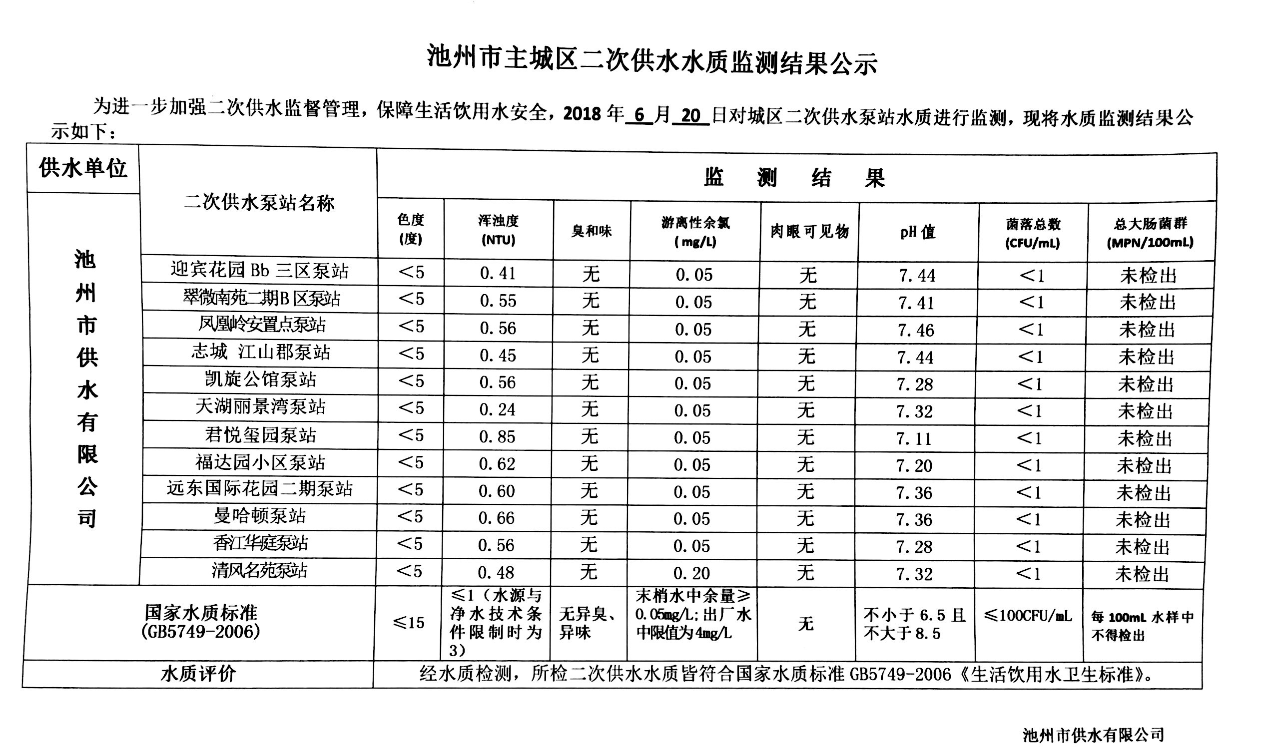 水質公告 所在位置:首頁 -> 水質公告