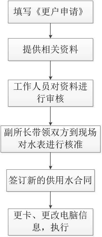 注:過戶前必須交清水費,并將原《交費卡》收回方可辦理相關事宜。