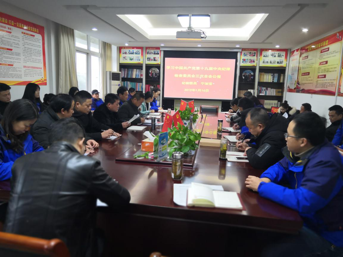 會上,紀檢委員寧加寶同志帶領大家學習了中國共產黨第十九屆中央紀律檢查委員會第三次全體會議公報。為大家解讀了改革開放40年來黨進行自我革命、永葆先進性和純潔性的寶貴經驗,以及全會對2019年全面從嚴治黨工作提出的具體要求,包括思想建設、政治建設、紀檢監察體制機制建設、紀檢監察隊伍建設,以及如何做實做細監督職責、持續深化政治巡視、整治群眾身邊腐敗等具體問題。