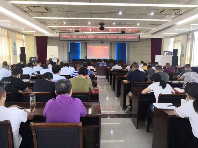 為扎實(shí)開(kāi)展“不忘初心、牢記使命”主題教育,根據(jù)上級(jí)黨組織工作部署,結(jié)合公司實(shí)際,9月16日下午,池州水業(yè)、供水、排水水環(huán)境黨支部聯(lián)合召開(kāi)“不忘初心、牢記使命”主題教育動(dòng)員部署會(huì)。三個(gè)支部的黨員、發(fā)展對(duì)象和積極分子約80余人參加。建投集團(tuán)黨委委員吳小平同志出席本次會(huì)議并作重要講話。