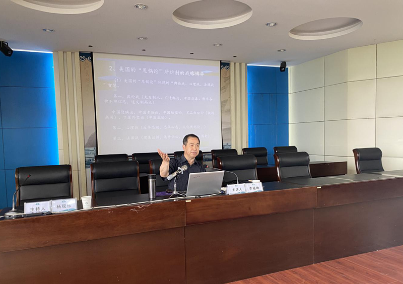 李福坤教授以“當(dāng)前復(fù)雜國(guó)際疫情背景下的我國(guó)國(guó)家安全形勢(shì)分析”為題,從當(dāng)前國(guó)際疫情背景出發(fā),用生動(dòng)的案例、詳實(shí)的數(shù)據(jù)和嚴(yán)謹(jǐn)?shù)倪壿嫞钊霚\出地分析了當(dāng)前周邊安全環(huán)境、中美關(guān)系、國(guó)際戰(zhàn)略形勢(shì)等,深刻闡述了我國(guó)整體安全觀和國(guó)家安全戰(zhàn)略,為大家呈現(xiàn)了一堂精彩的國(guó)家安全形勢(shì)教育專(zhuān)題黨課,引發(fā)了現(xiàn)場(chǎng)陣陣熱烈的掌聲。