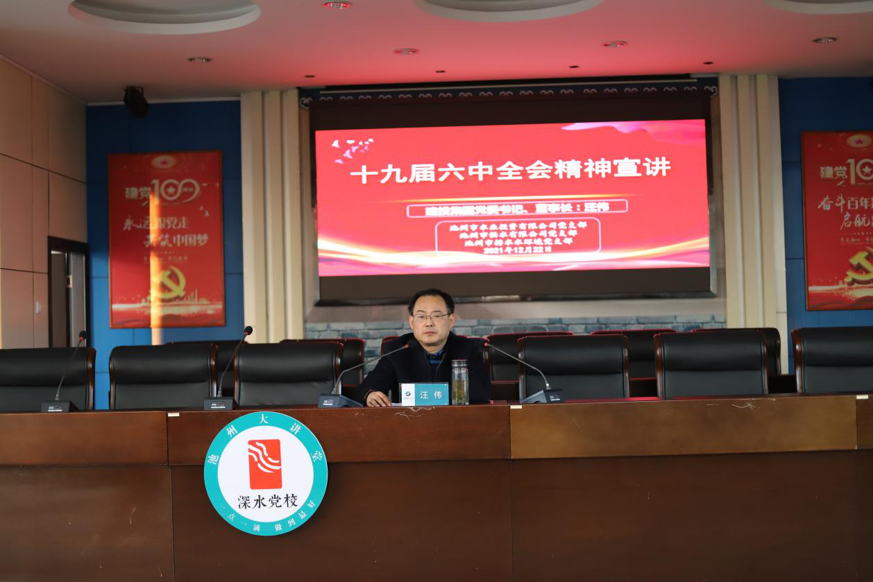 12月22日,池州市建設(shè)投資集團(tuán)黨委書記、董事長汪偉赴池州市供水、排水、水環(huán)境公司,宣講黨的十九屆六中全會精神,并開展綜合調(diào)研。公司董事長楊觀樂及所有公司高管等相關(guān)人員陪同調(diào)研。