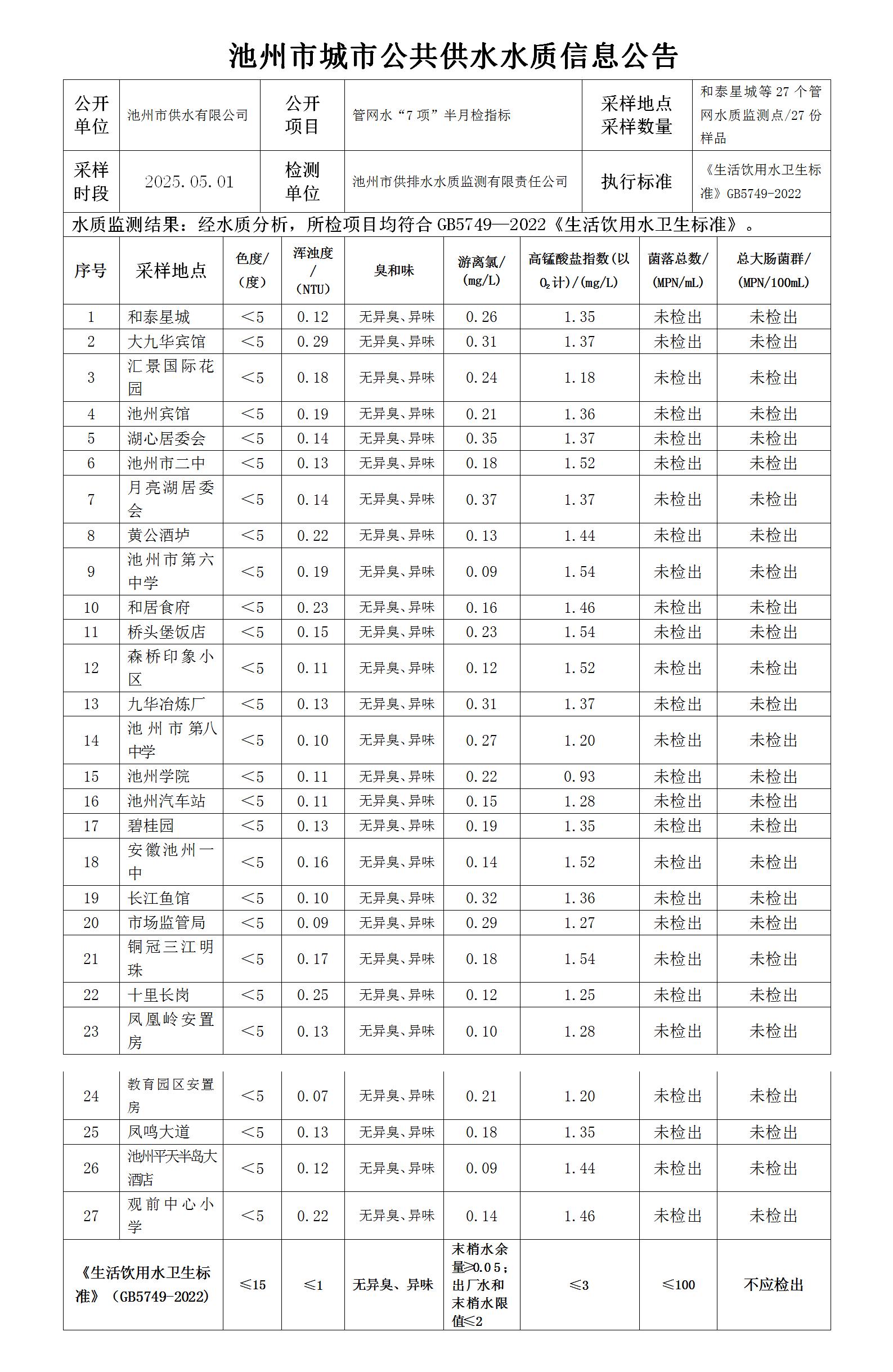 | 池州市城市公共供水水質信息公告管網水“7項”半月檢指標5-1 | |