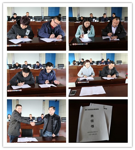 接著,公司領(lǐng)導(dǎo)與各部門負(fù)責(zé)人逐一簽訂了公司《2017年部門經(jīng)營目標(biāo)責(zé)任書》、《2017年安全生產(chǎn)“一崗雙責(zé)”責(zé)任書》,并由相關(guān)部門負(fù)責(zé)人做表態(tài)發(fā)言。