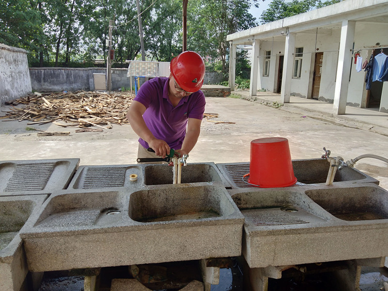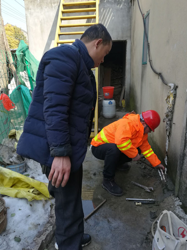 25日清早,大雪紛飛,錢程剛泡好茶正準(zhǔn)備喝上一口,就接到用戶打來的電話,反映江口村幾戶家中無水,他二話沒說立即帶上工具趕往現(xiàn)場(chǎng)。到達(dá)現(xiàn)場(chǎng)后詢問后得知該村有兩個(gè)組共六十余戶沒水或家中水小,他很著急,心想:這個(gè)大雪天,村里60多戶老老少少?zèng)]有水怎么生活啊!刻不容緩,他立即圍繞這兩個(gè)組周圍的管網(wǎng)進(jìn)行巡查,憑他多年維修經(jīng)驗(yàn)判斷感覺是管道漏水泄壓造成的,經(jīng)過1個(gè)小時(shí)的巡查,果然在一個(gè)池塘邊發(fā)現(xiàn)一處DN63PVC管道裂開,水正往池塘里漏,他立刻關(guān)閥止水,并立刻拿來?yè)屝薰ぞ咝迯?fù)管道,冰雪天,冷水刺骨,在冷水里泡了1個(gè)多小時(shí)雙手早已凍的發(fā)紫,他咬牙堅(jiān)持著,終于將管道修復(fù)好,村里60多戶村民能用上水了,可此時(shí)的他已快成為一個(gè)雪人了,村民們感動(dòng)的都要紛紛拉他到家里喝上杯熱茶暖暖身子,“這是我應(yīng)該做的”說完后,錢程就急著要趕到另一個(gè)搶修現(xiàn)場(chǎng)。