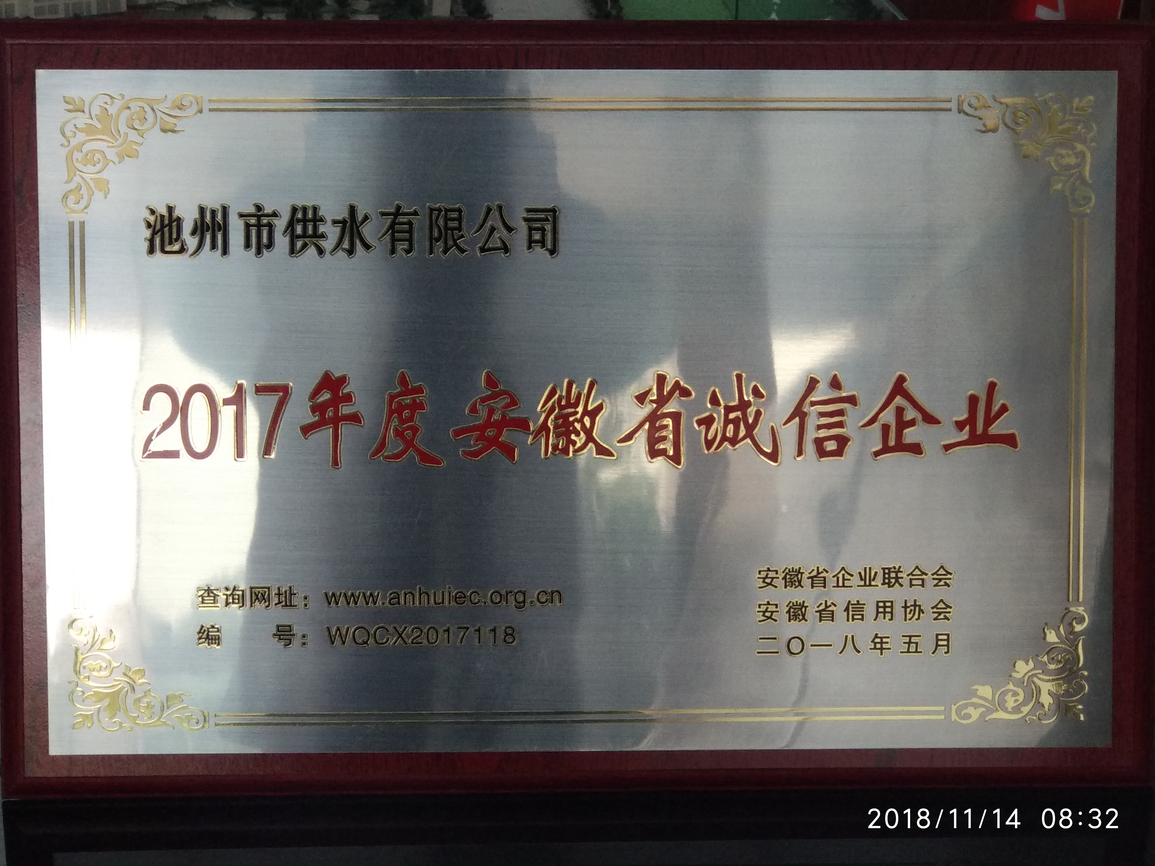 | 公司榮獲2017年度省誠信企業稱號 | |