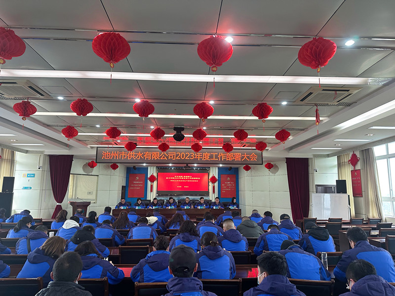關山初度塵未洗,策馬揚鞭再奮蹄。春節剛過,池州供水公司就馬不停蹄謀劃部署各項新年大計。2月6日,池州供水公司2023年生產經營目標任務部署大會在四樓會議室召開,公司全體除當班人員外近100人參加會議,正式吹響了“實干為要”的行動號角,拉開了“新年開新局”的序幕。