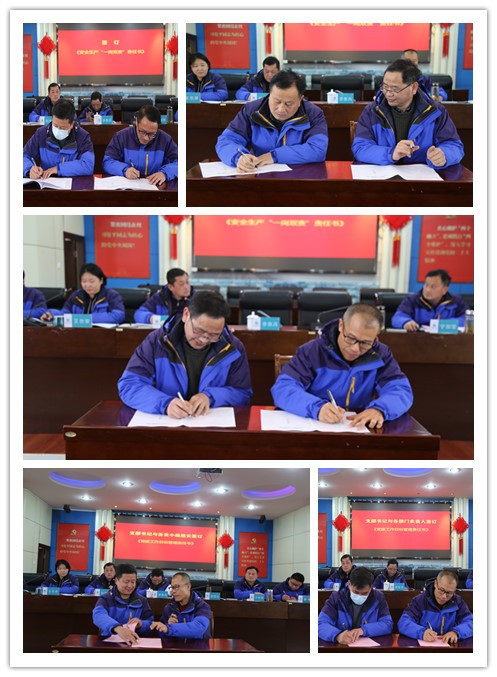 隨后,公司高管、各部門負責人、各小組組長簽署安全生產、一崗雙責、經營業績、黨風廉政等各項責任書,各分管領導對分管部門作工作要求,相關部門作表態發言。