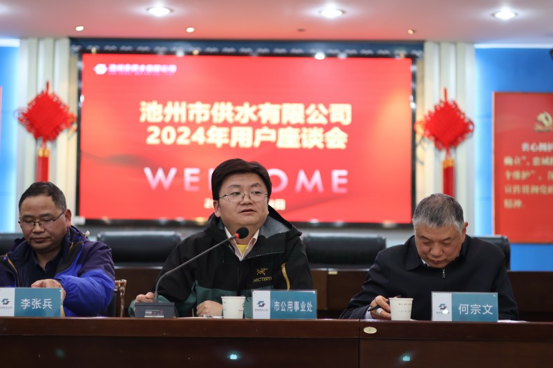 12月4日下午,池州供水公司組織召開了2024年度用戶座談會。為加強供水與社會各界的有效溝通和交流,進一步完善供水服務質量,掌握企事業單位和居民用水服務需求,本次會議特地邀請金橋水務、安徽浩源鋁業、安徽銅冠銅箔、華宇物業等用戶代表交流座談,公司領導班子成員及相關部門負責人參加。